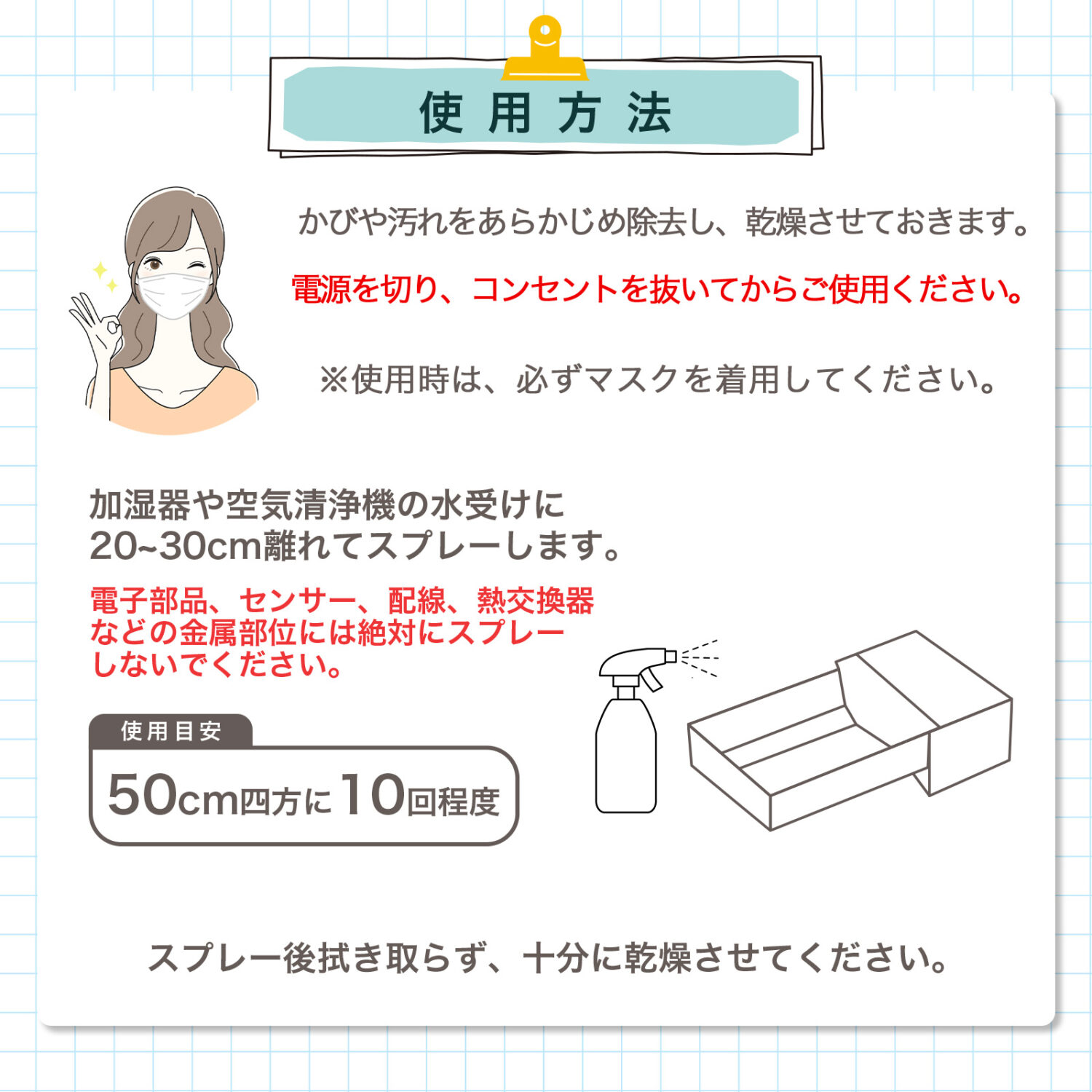 防カビ剤、界面活性剤、精製水